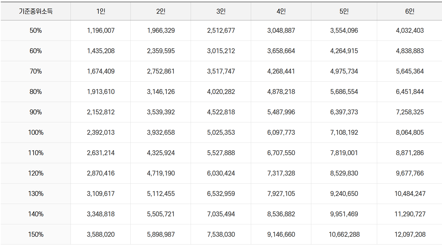 - 매년 금액이 달라지며, 가구원 수에 따라 기준도 달라짐