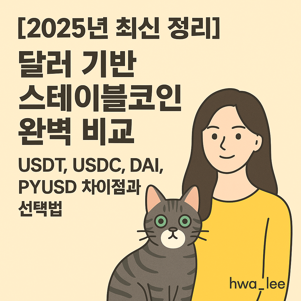 이번 포스팅에서는 **세계 주요 달러 기반 스테이블코인(USDT, USDC, DAI, PYUSD)**의 구조, 발행처, 담보 차이를 한눈에 정리하고, 투자 성향에 맞는 실용적인 선택법까지 쉽게 알려드립니다.